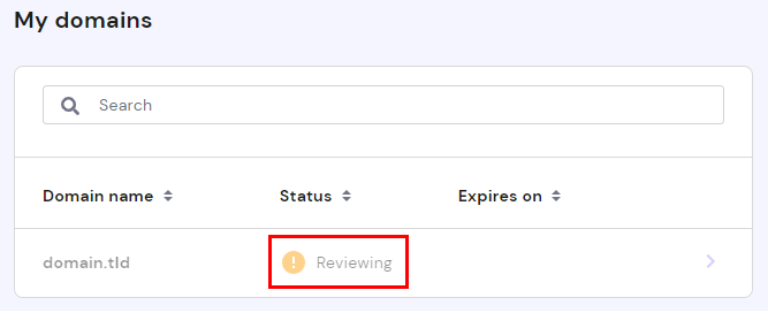 在某些情况下,您Hostinger购买并注册了一个域名后,它会在 hPanel上显示为Reviewing状态: