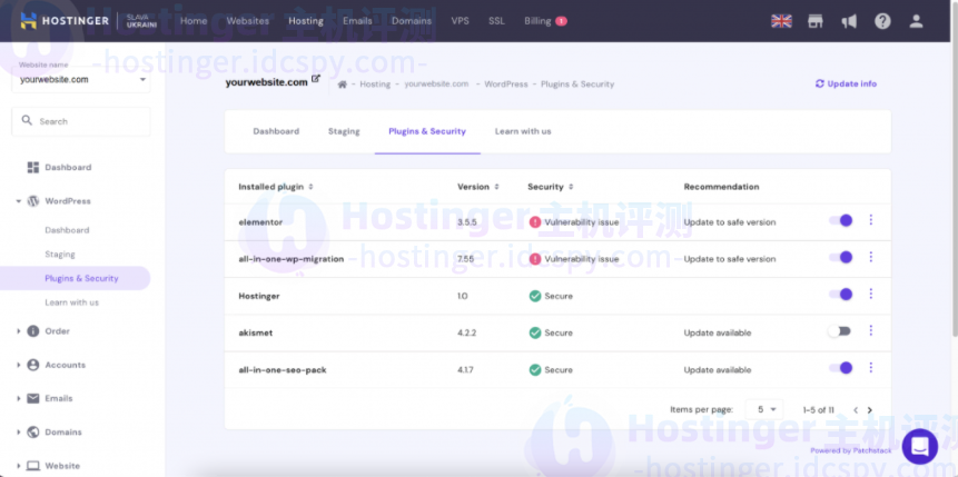 Hostinger非常重视安全,Hostinger会采取额外措施来确保WordPress网站更加安全。而与Patchstack合作,这是一种高级安全工具,可识别WordPress插件中的安全漏洞。
