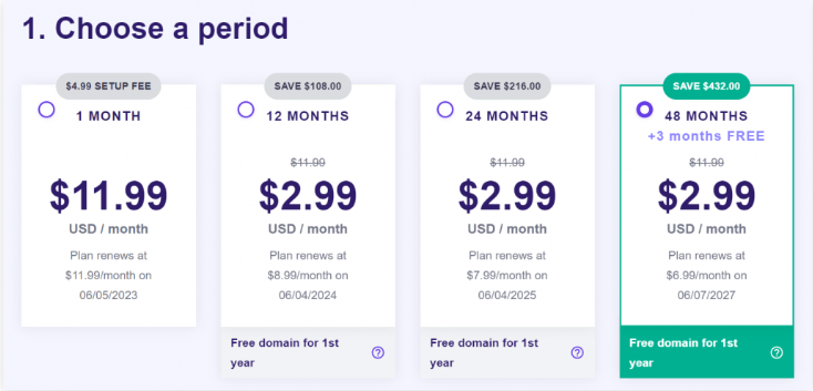 - 3.在结帐页面上,选择您的首选托管期。