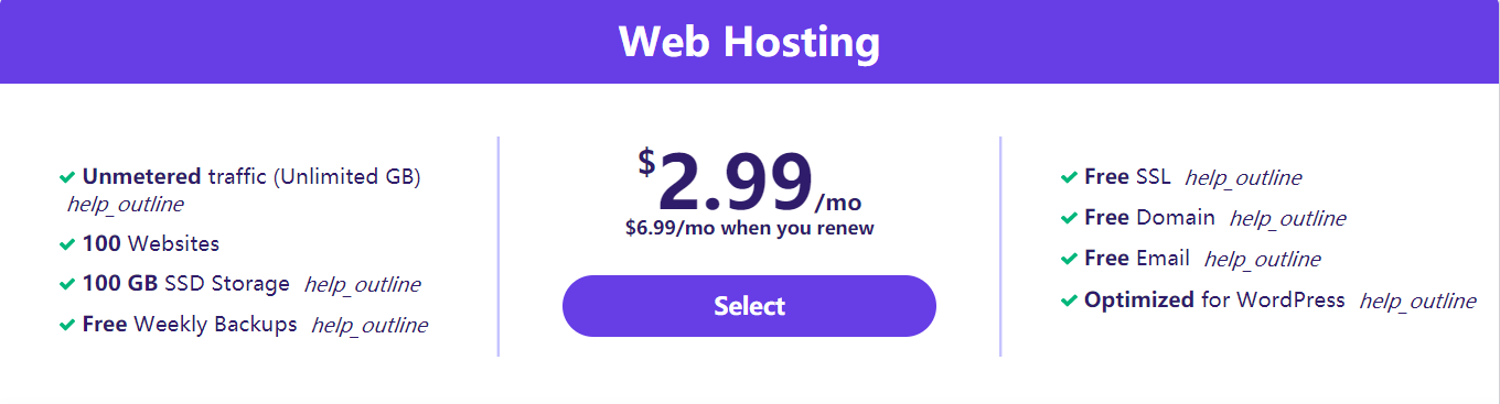 Hostinger提供多种不同配置的虚拟主机可供选择,包括Single、Premium、Business套餐。其中Premium一体化虚拟主机非常受欢迎,支持搭建100个网站,不限流量,提供免费域名、免费SSL证书、免费电子邮箱、免费备份服务等,99.9%正常运行时间保证,30天退款保证,全天候技术支持。