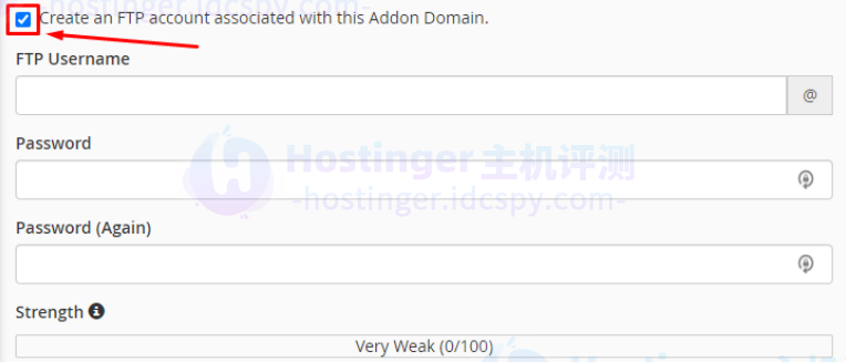 您还可以在此过程中为您的新域创建一个单独的 FTP 帐户,您只需选中复选标记,选择一个 FTP 用户名和密码: