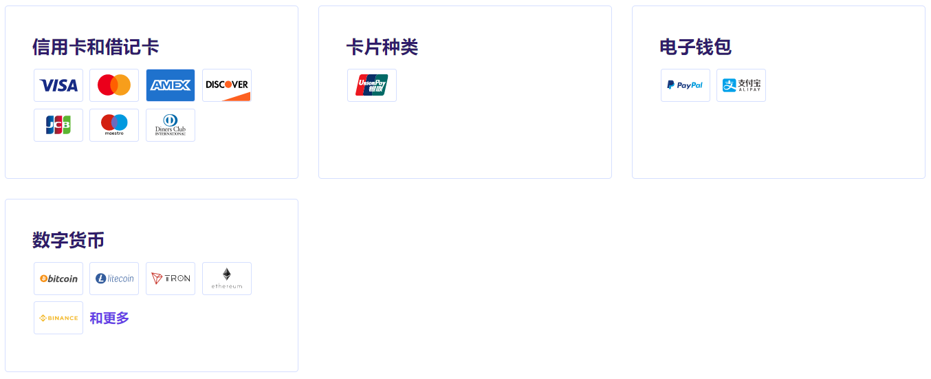 付款方式汇总: