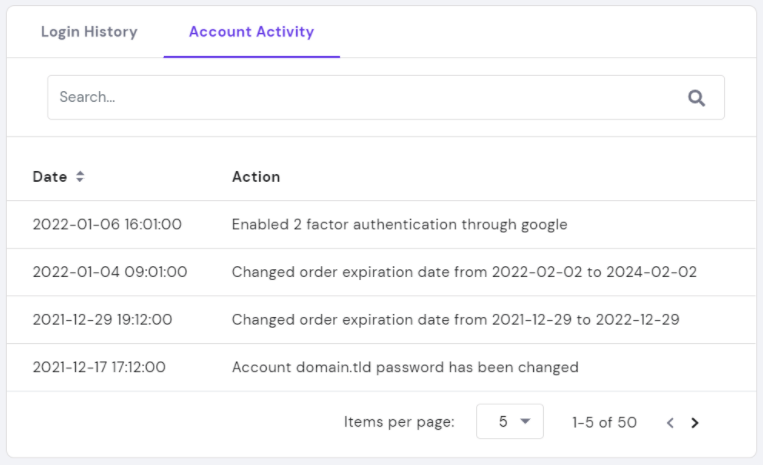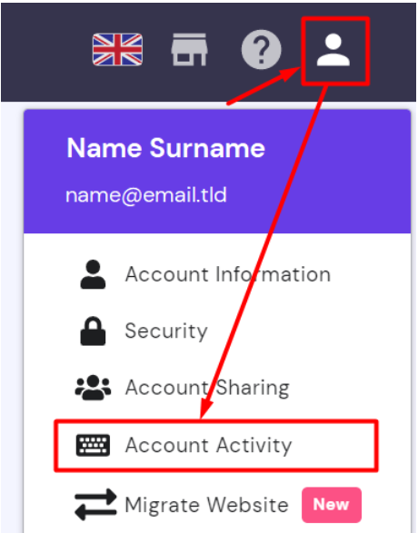 登录Hostinger帐户单击配置文件图标,然后选择Account Activity: