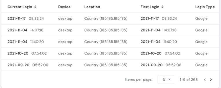 有2个部分:登录历史记录和帐户活动。选择登录历史,在此页面上,您可以详细查看有关以前登录的信息: