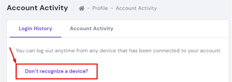 如果以前的某些登录名看起来不熟悉,或者您怀疑有人访问了您的帐户,您可以随时从所有设备上注销并只需单击几下即可更改密码。只需单击不识别设备?页面顶部的按钮: