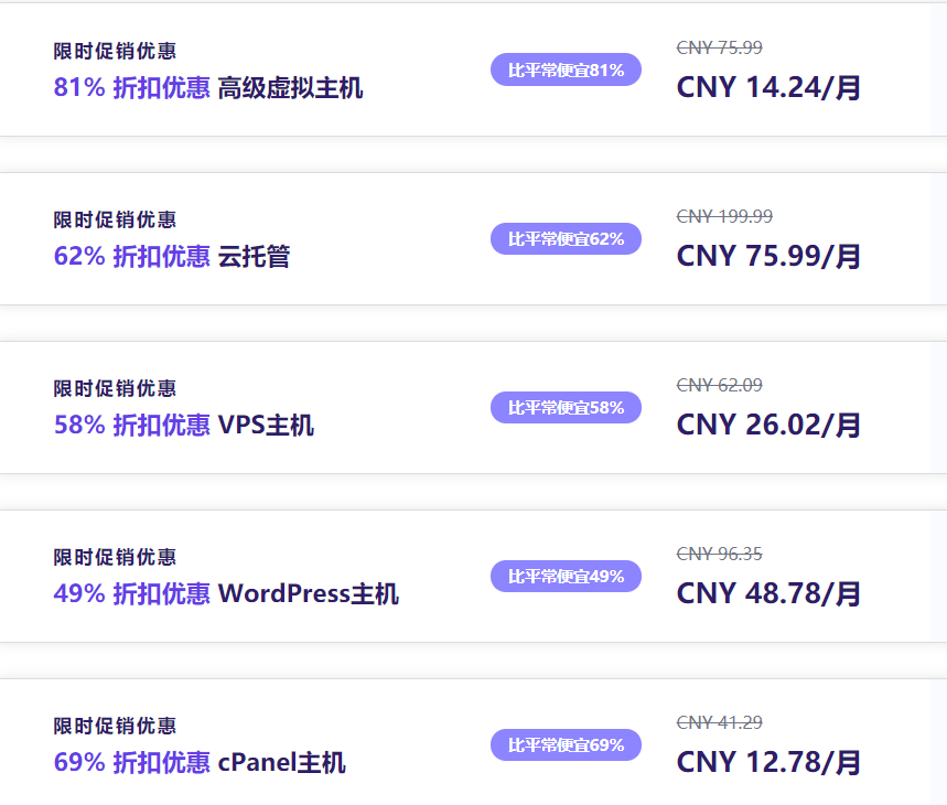从以上的优惠可以看出,Hostinger旗下的所有产品在8月依旧参与活动,每个产品的活动力度不一样,大家根据自己需求购买即可。